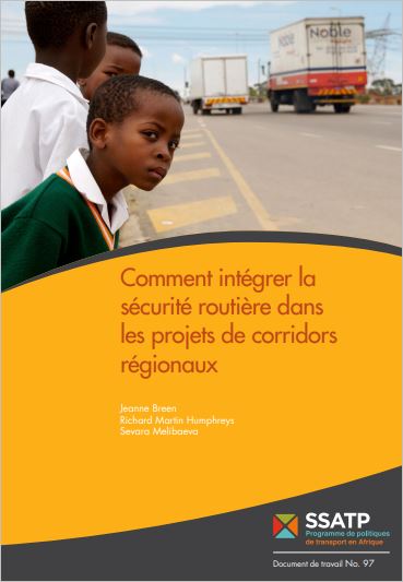 Cette publication SSATP préparée conjointement avec la Banque mondiale, est avant tout un guide de bonnes pratiques visant à intégrer la sécurité routière dans les programmes d’investissement au sein des corridors de transit dans les pays à faible revenu et à revenu intermédiaire (PFR-PRI). Les bénéfices liés aux améliorations tant physiques qu’institutionnelles des projets d’investissement dans les corridors de transport et de commerce sont souvent compromis par l’augmentation des risques d’accidents de la route qui résulte de l’augmentation du volume de trafic de camions et de la vitesse sur les routes. Il est par conséquent nécessaire de maximiser l’efficacité de ces investissements dans les corridors de transit en prônant des interventions plus globales et plus efficaces en matière de sécurité routière, d’autant que les orientations existant à ce sujet sont limitées. Ce guide vise à combler ce manque et à offrir une approche sur-mesure des priorités de sécurité routière dans les corridors de transit en : (i) mettant en avant les bonnes pratiques de gestion de la sécurité routière au sein des corridors de commerce régional à travers le monde ; (ii) résumant les capacités existantes de gestion des corridors de transit dans les PFR-PRI ; (iii) décrivant des composants génériques des bonnes pratiques en sécurité routière dans les projets d’investissement ; et en (iv) définissant une feuille de route et une gamme d’outils capables d’identifier, de préparer et d’exécuter des projets de sécurité routière dans les corridors de transit.